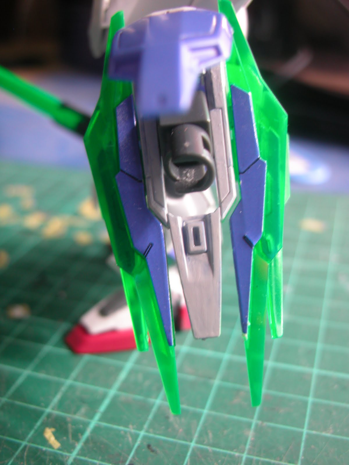 the blue, gundam marker, rather unfitting with the overall color. screw that then. lol. ah yeah, i didnt even bother the seams, like i said, something more relaxing than a relax build